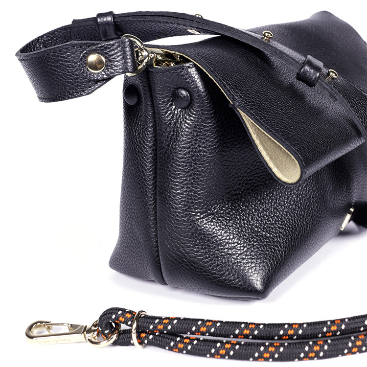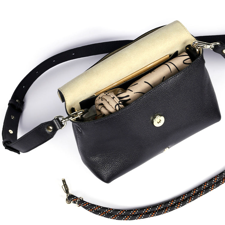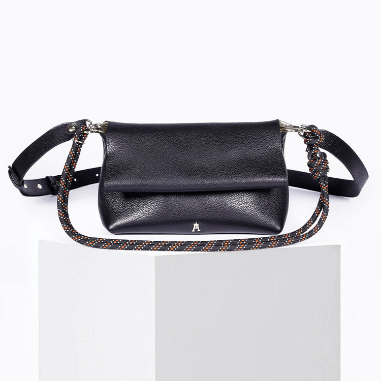 Enjoy two carrying options thanks to the interchangeable shoulder straps: one in adjustable leather, the other in High Noir climbing rope for an offbeat style.