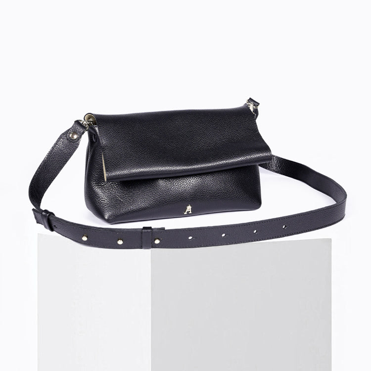 Designed to accompany you every day, the Amie Grainé Noir bag perfectly combines flexibility and structure. Its compact size elegantly accommodates your essentials, secured by a magnetic flap.