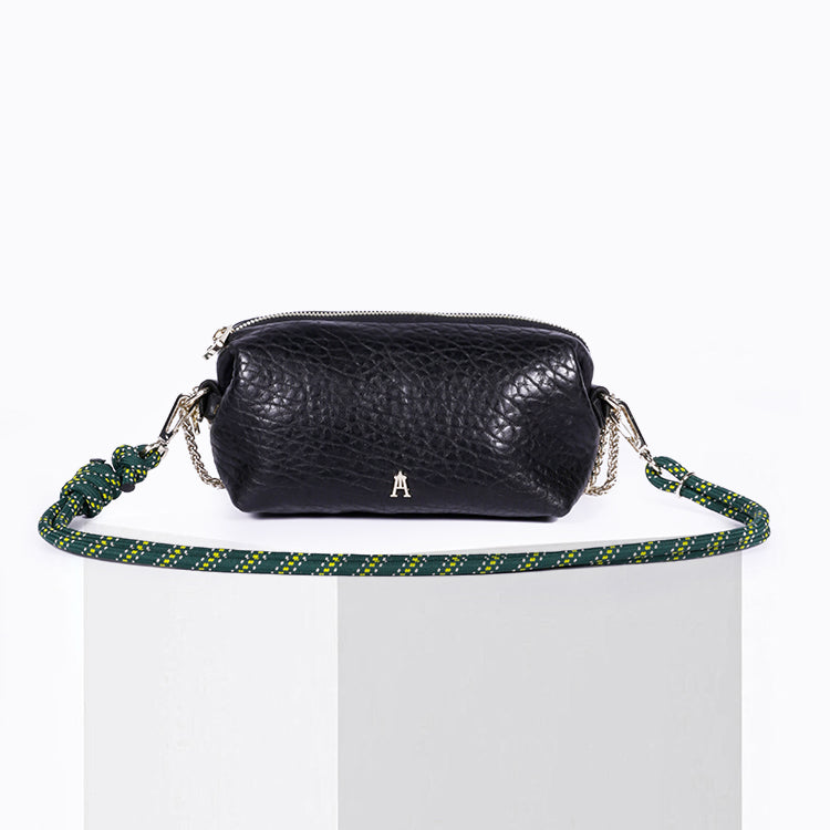 Removable shoulder strap, adaptable to the vast majority of our models, in climbing rope with a High Tennis pattern: a green base with white and yellow details.