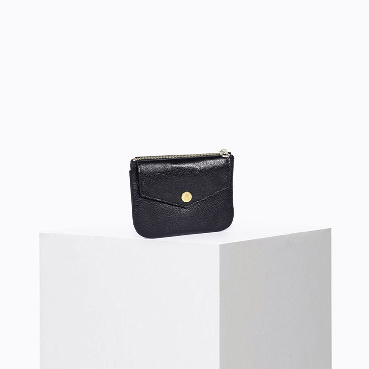 Lightweight and practical, it's designed to simplify your life: two card slots secured by a snap flap and a central zipped pocket for coins. Perfect for moving from one bag to another or slipping into a pocket without taking up too much space.