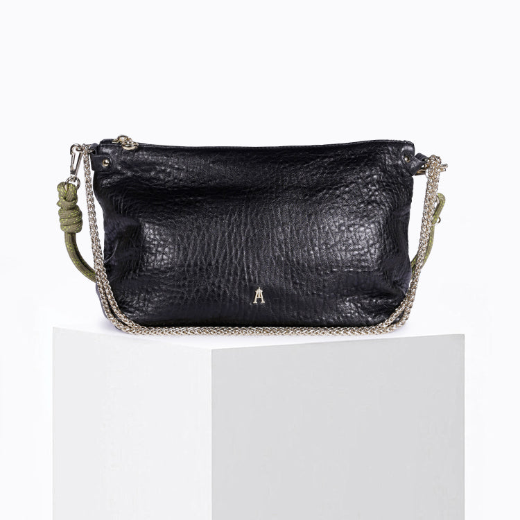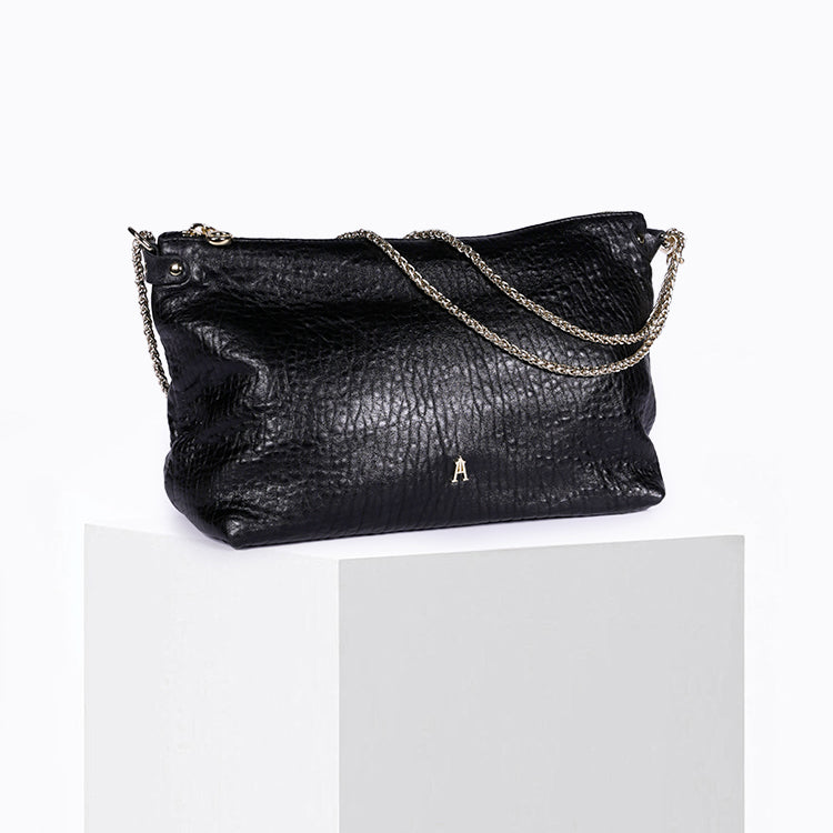 The Mallow Bubble Noir is our soft bag with the ideal volume, here available in bubble leather with a naturally bubbled grain: each bag is unique.
