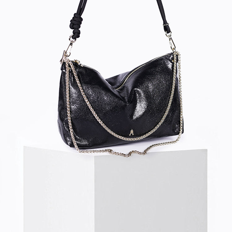 The Mallow Lunar is a modular bag with a bold style, made from supple metallic lambskin with a luminous and subtle finish.