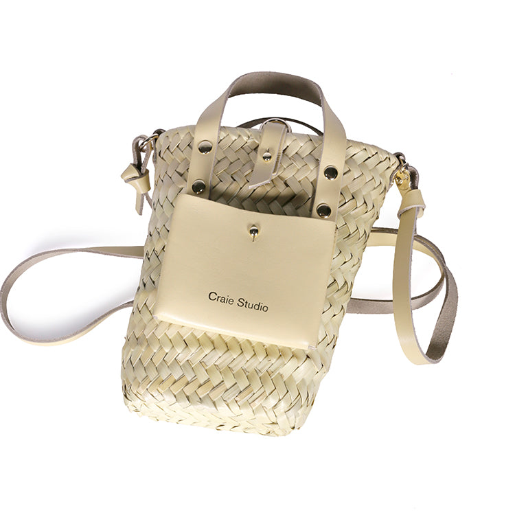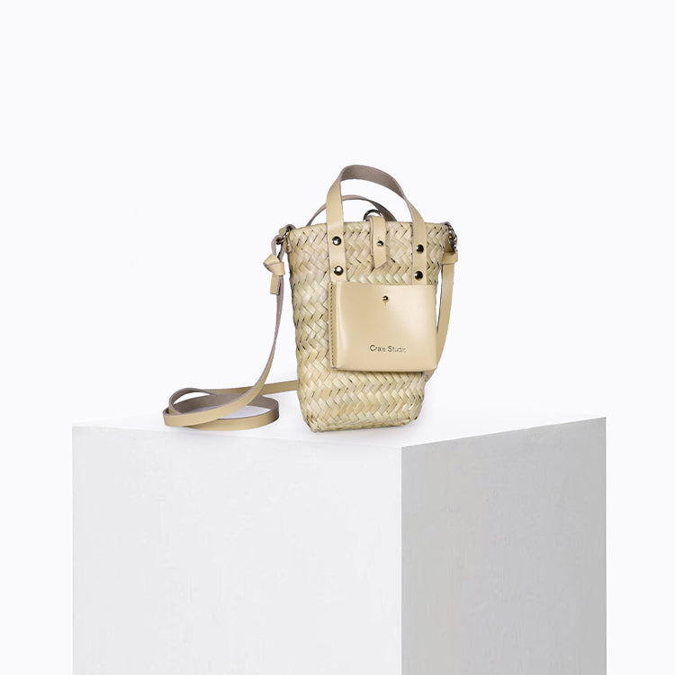 Réinterprété par Craie Studio, ce panier miniature associe avec subtilité le doum tressé à la main et le cuir de vachette jaune beurre, créant un équilibre raffiné entre artisanat traditionnel et esprit contemporain. Son format compact est idéal pour accueillir vos indispensables : téléphone, porte-monnaie, lunettes, clés ou rouge à lèvres.