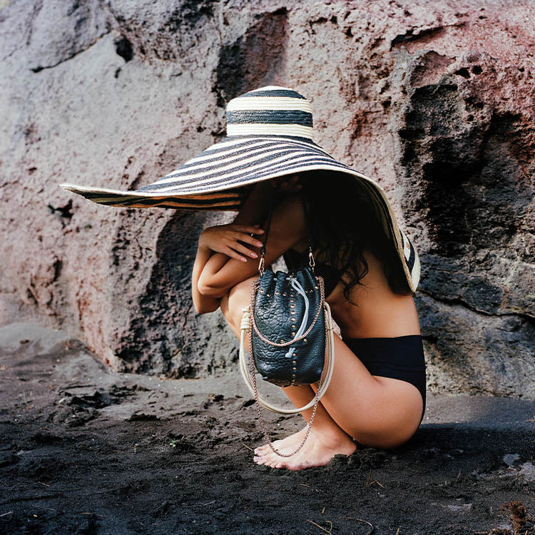 The Beco Bubble Noir revisits the iconic bucket format of the Bibi, crafted from beautiful supple bubble lambskin leather of French origin, vegetable tanned and certified chrome-free, made in a French tannery in the Tarn region.