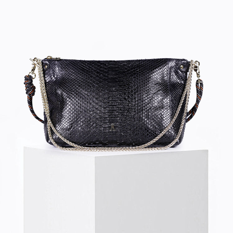 Mallow Python Noir is the modern clutch bag with perfect volume in exceptional leather: python.