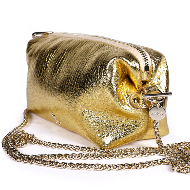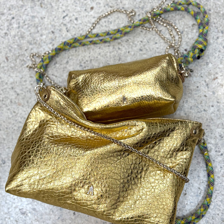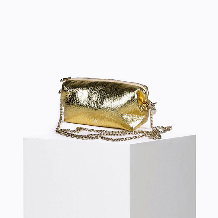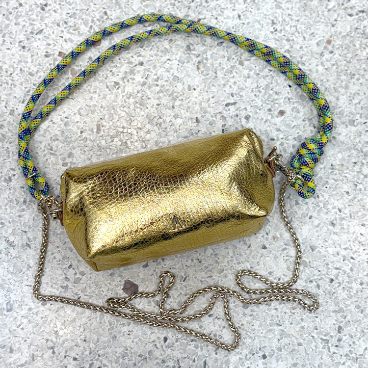 The Nuage Bubble Gold Pouch is a small, ultra-modular bag sold with 2 shoulder straps.