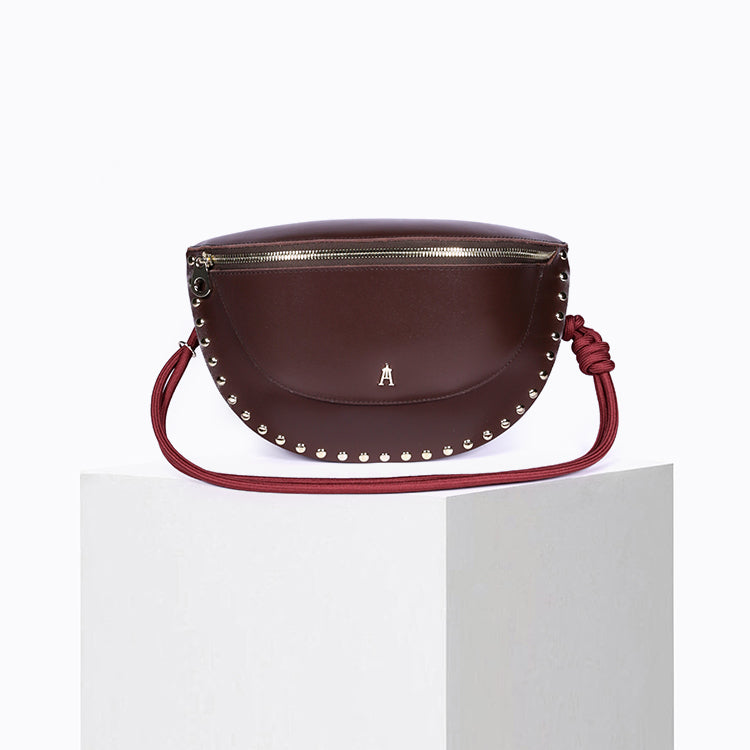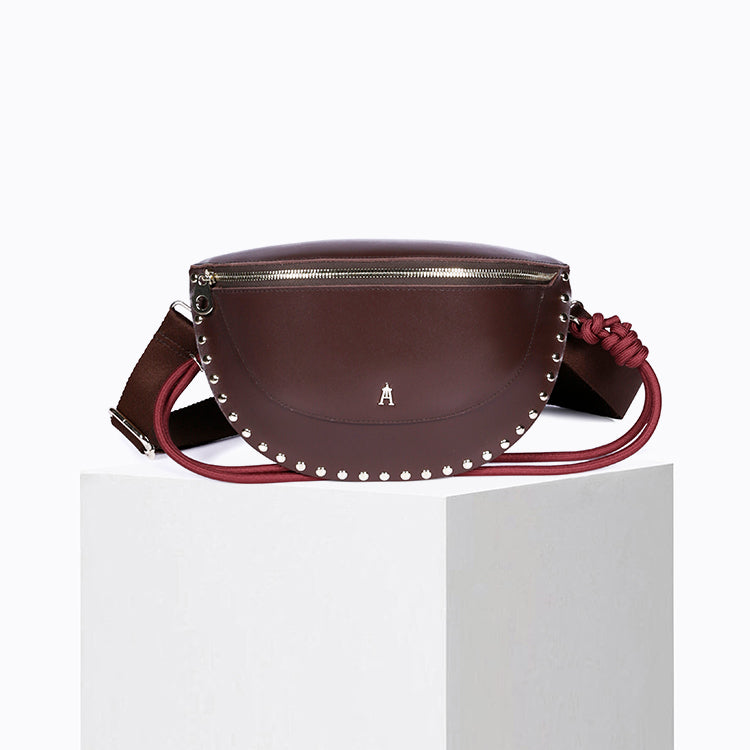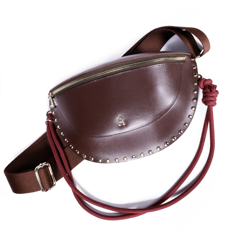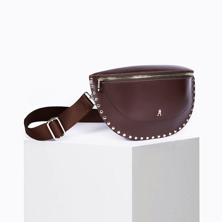 The Smile Clou Choco belt bag is a bold and timeless take on our iconic belt bag. Crafted from thick cowhide leather, it's enhanced with stud details that accentuate its curves while giving it a bold character.