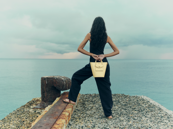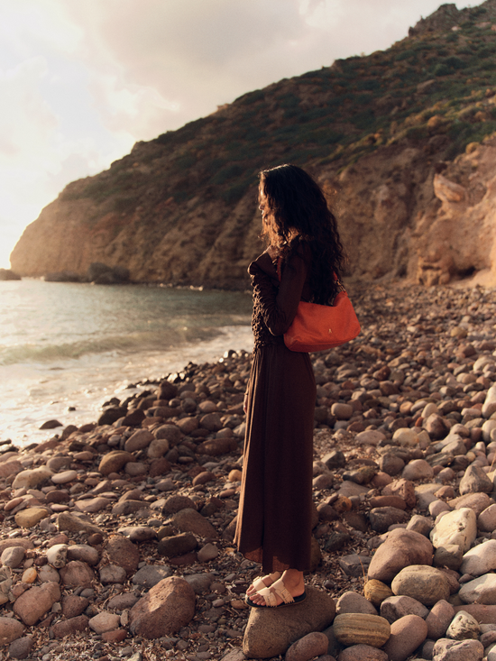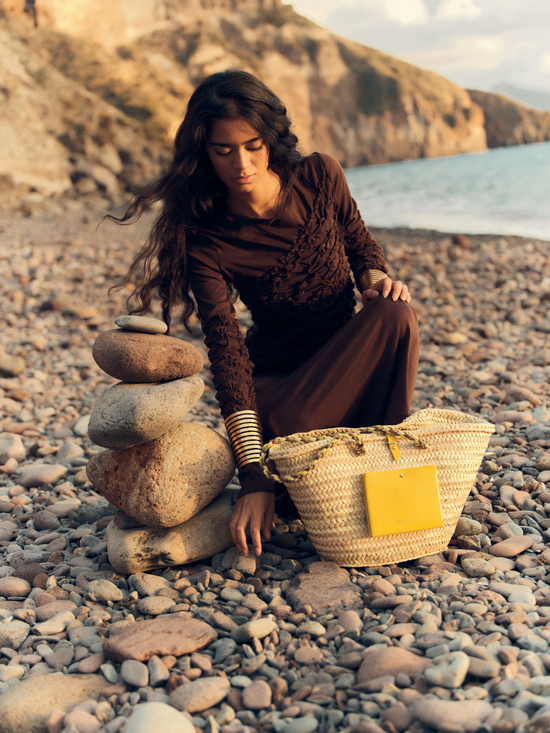 Les promesses de ce premier chapitre : un souffle iodé qui marque le début de la saison, des matières brutes baignées de lumière, inspirées par la roche, le sel et le vent, des cuirs pleins et des tresses naturelles aux accents minéraux, travaillés pour capter les variations du jour.
