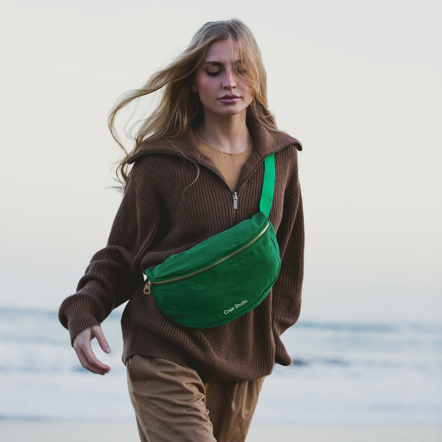 Este es el imprescindible de la temporada: ¡Banana Mint! Esta riñonera grande está confeccionada con lona de algodón orgánico tejida en Francia y teñida en piezas para crear un efecto vintage único. Déjate seducir por su color verde brillante para dar un toque de originalidad y de carácter a tu estilo.