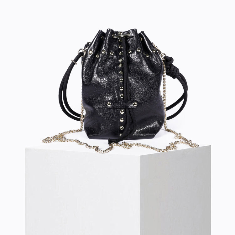 Le Beco Gotham revisite le format seau iconique du Bibi dans une version en cuir métalllisé souple.