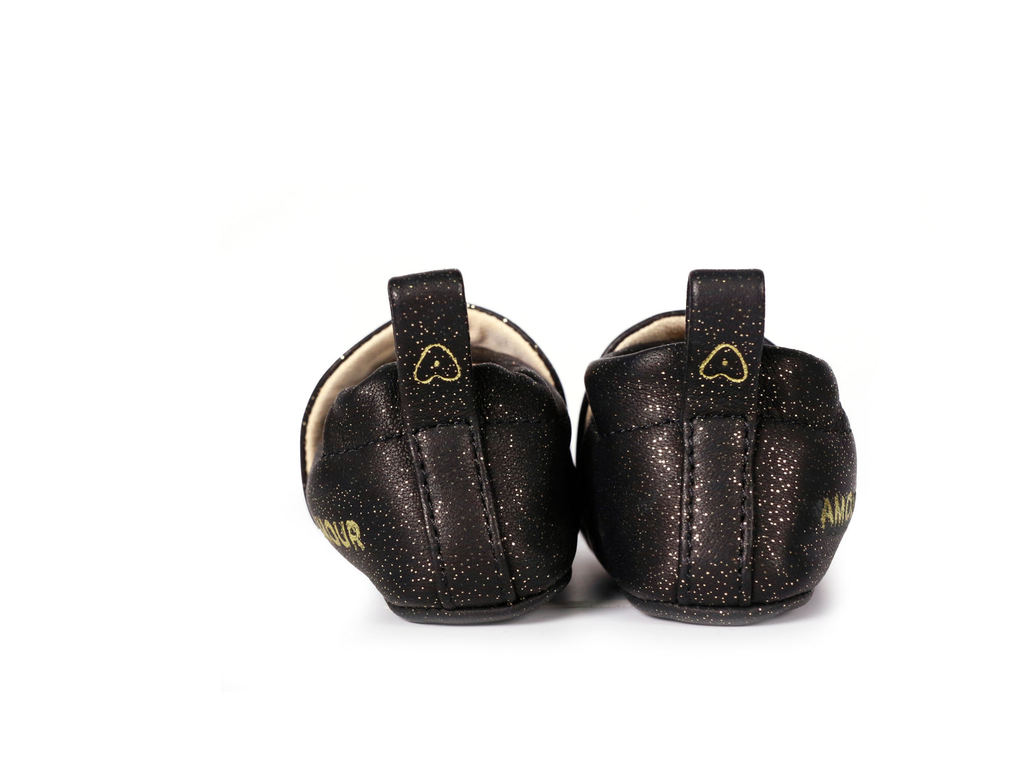 Zapatilla A en piel de cordero flexible y duradera, color negro metalizado con sutiles pepitas en oro blanco.