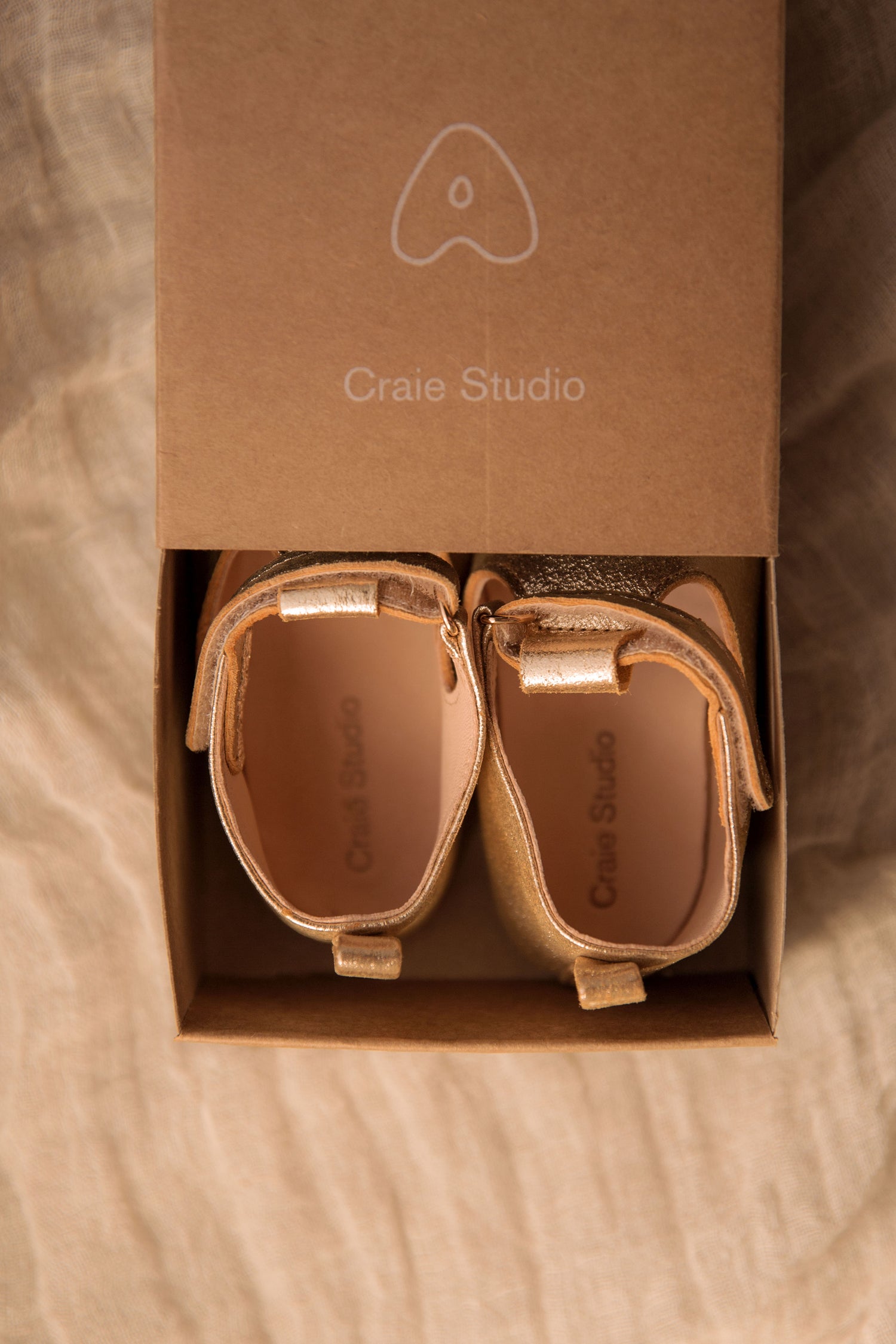 Una nueva incorporación a la colección Craie Studio, la zapatilla B es una camiseta pequeña que se cierra con velcro.
