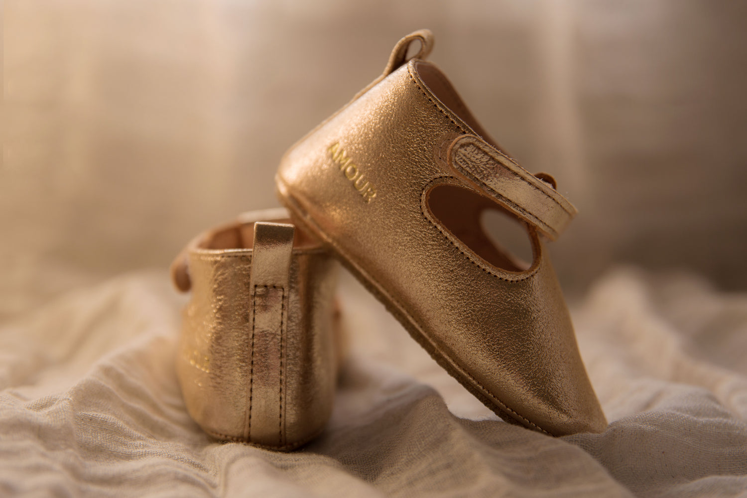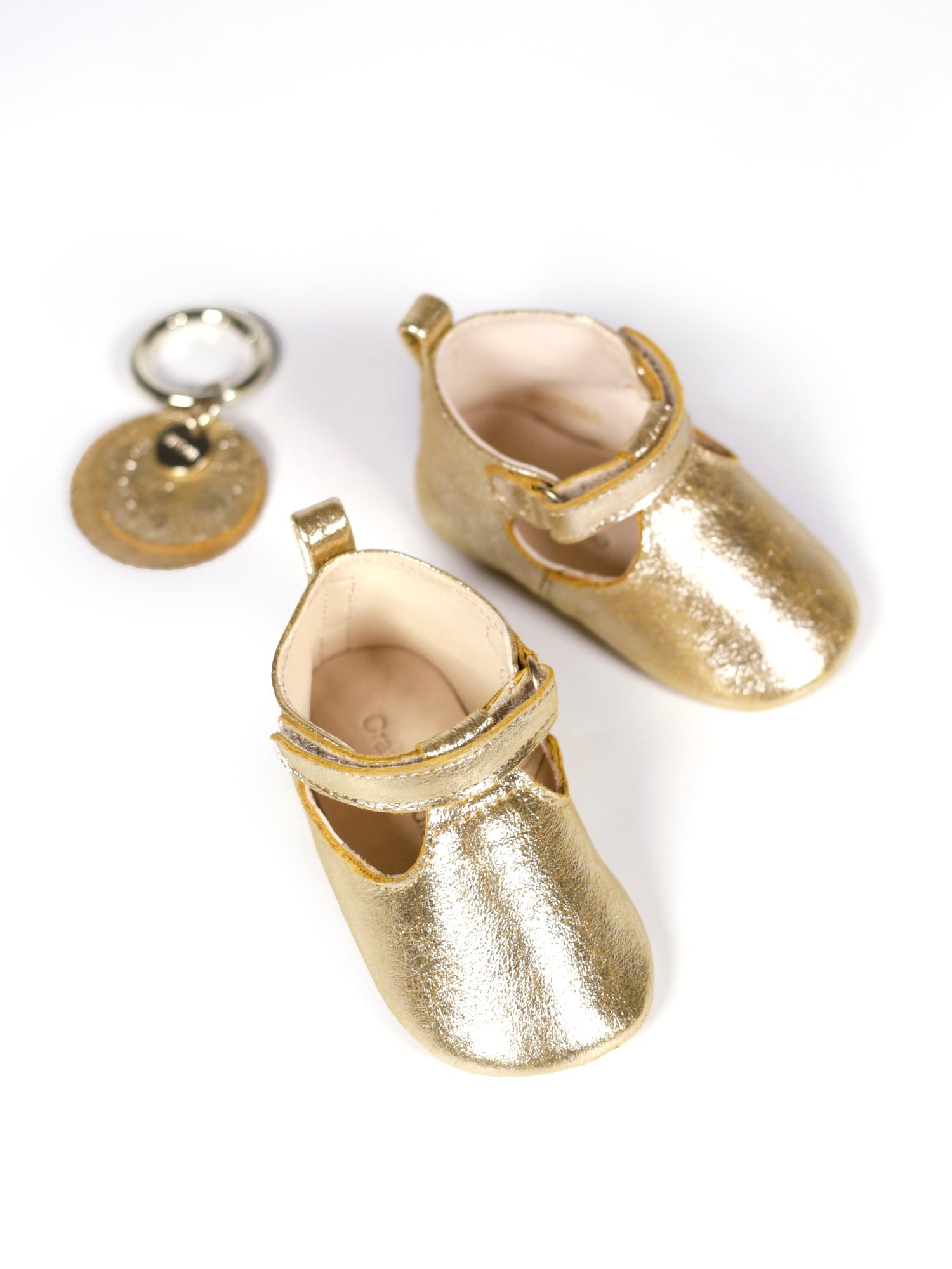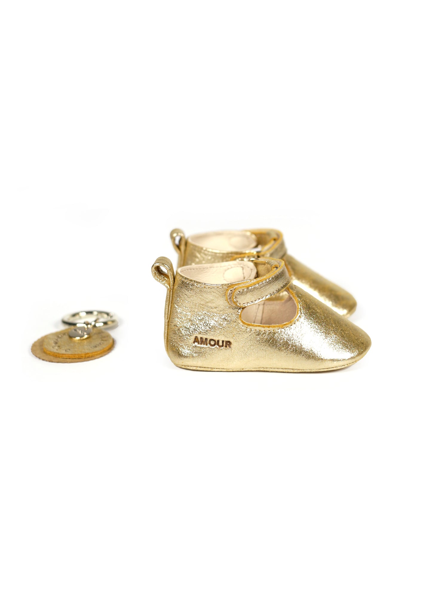 El Chausson B Poudre Or está hecho de ante de cordero flexible y duradero, color dorado.