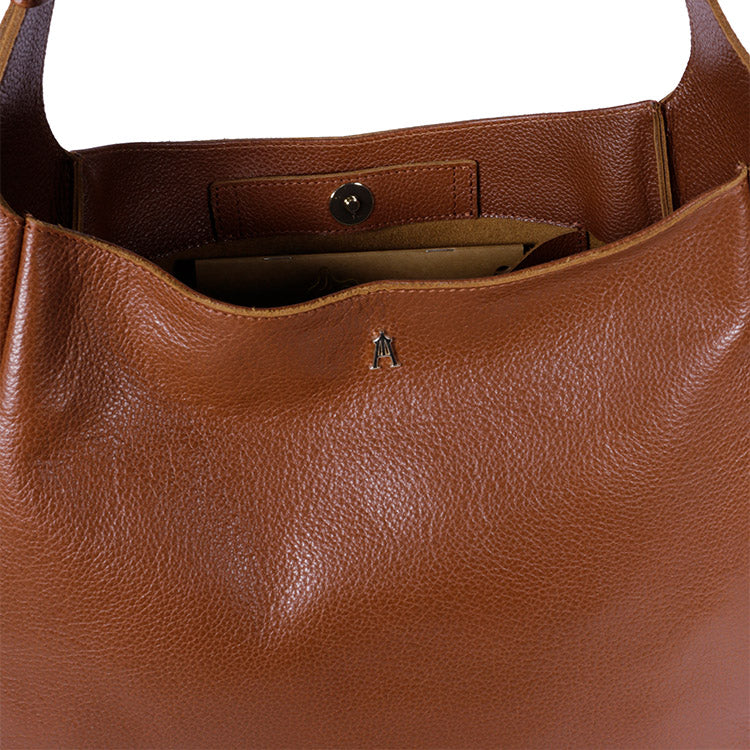 Confectionné en cuir de veau grainé souple coloris camel Coffee, il séduit par sa silhouette douce et sa belle tenue. Son grand volume permet d’y glisser tous vos indispensables, que ce soit pour le quotidien ou vos escapades.