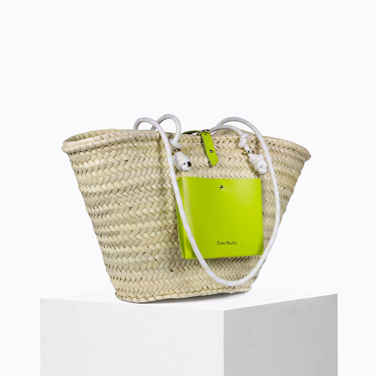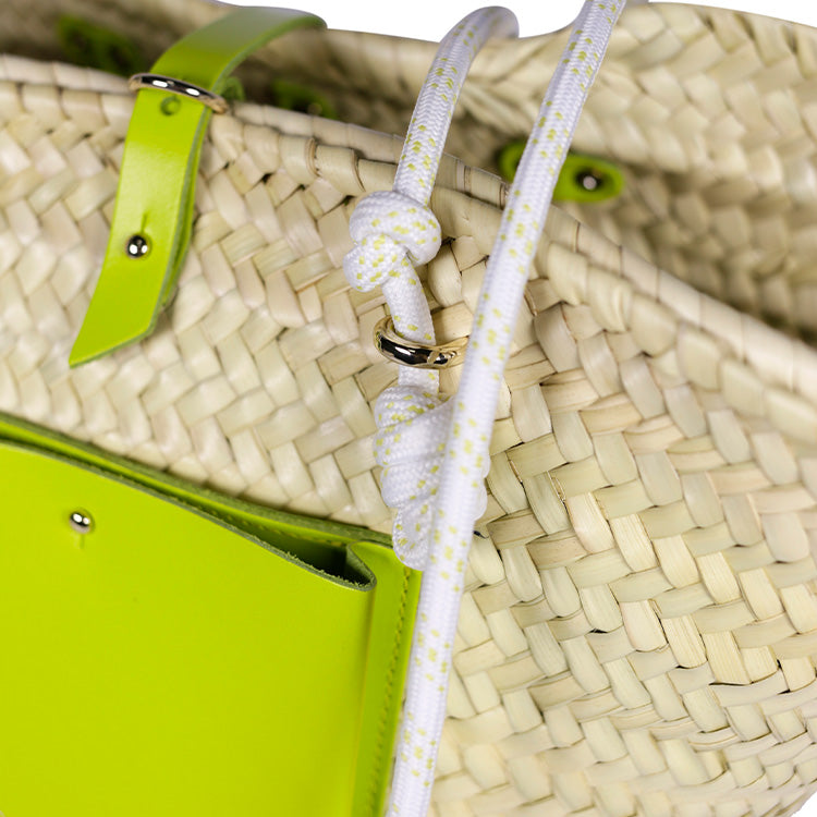 À la fois contemporain, chic, frais et original, le panier Calanques Lime Poussin est pensé pour vous accompagner tout l’été. Il se porte aussi bien au bras qu’à l’épaule, et s’impose comme le compagnon idéal des journées ensoleillées, en ville comme en vacances.