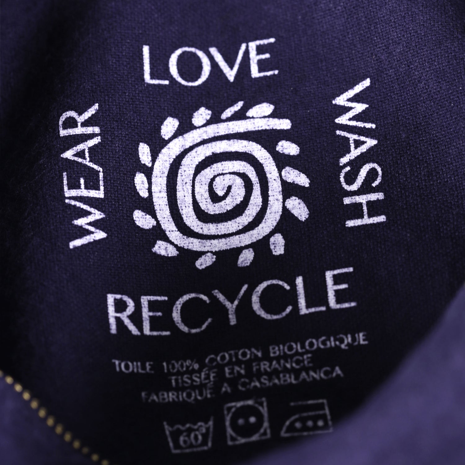 Encre es el magnífico color azul marino oscuro de nuestro pequeño bolso Hobo atemporal de nuestra colección eco-responsable en algodón orgánico: Wear Wash Love Recycle. Suave y bohemio, no querrás quitártelo: guarda en él todos tus elementos esenciales diarios y colócalo sobre el hombro para liberar tus manos o incluso cruzado.
