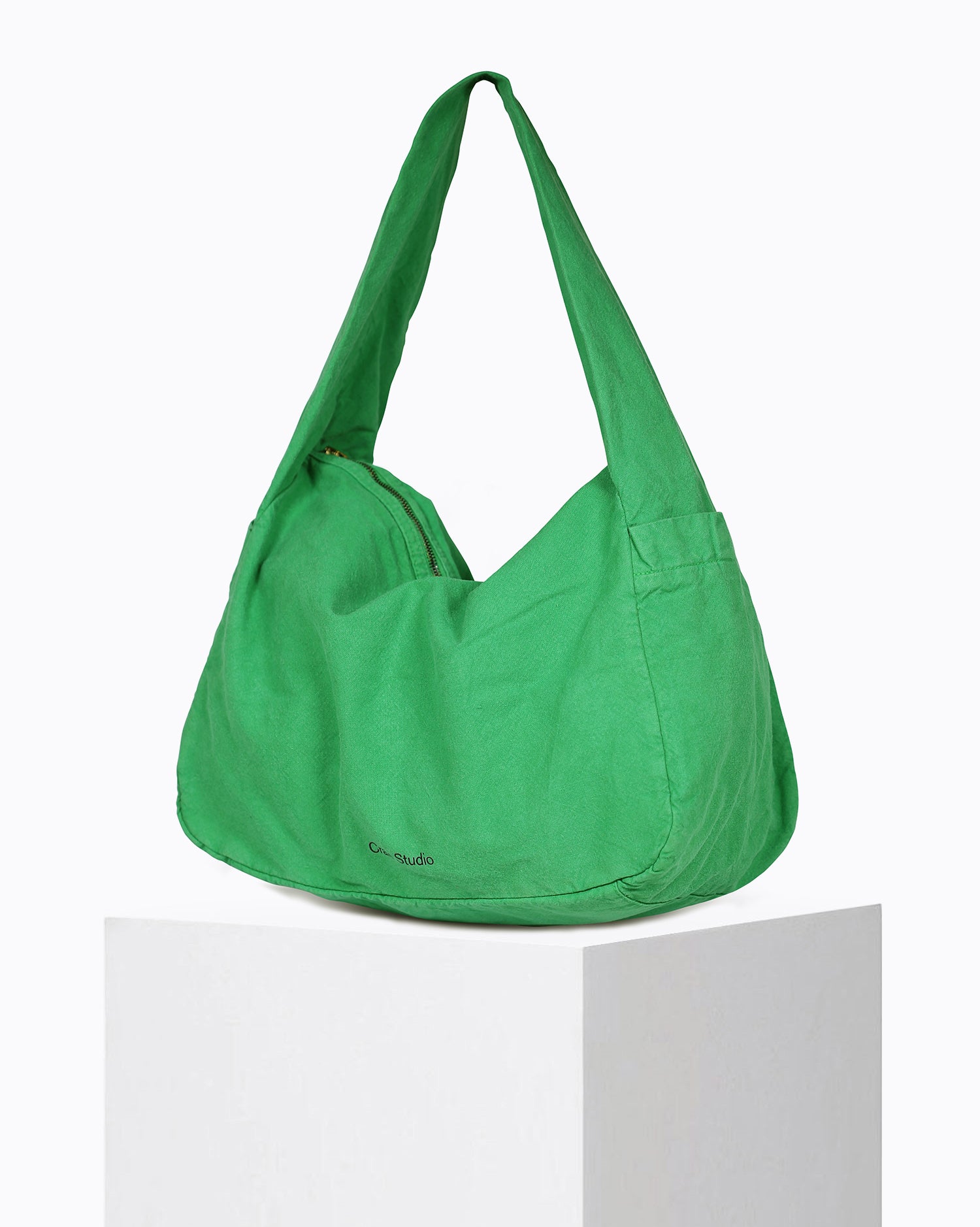 El verde menta intenso aparece en el pequeño bolso Hobo de nuestra colección atemporal de algodón orgánico: Wear Wash Love Recycle. Este es nuestro bolso suave y bohemio en un hermoso color verde que no querrás quitarte: guarda en él todos tus elementos esenciales para el día y colócalo sobre tu hombro para liberar tus manos o incluso llevarlo cruzado.