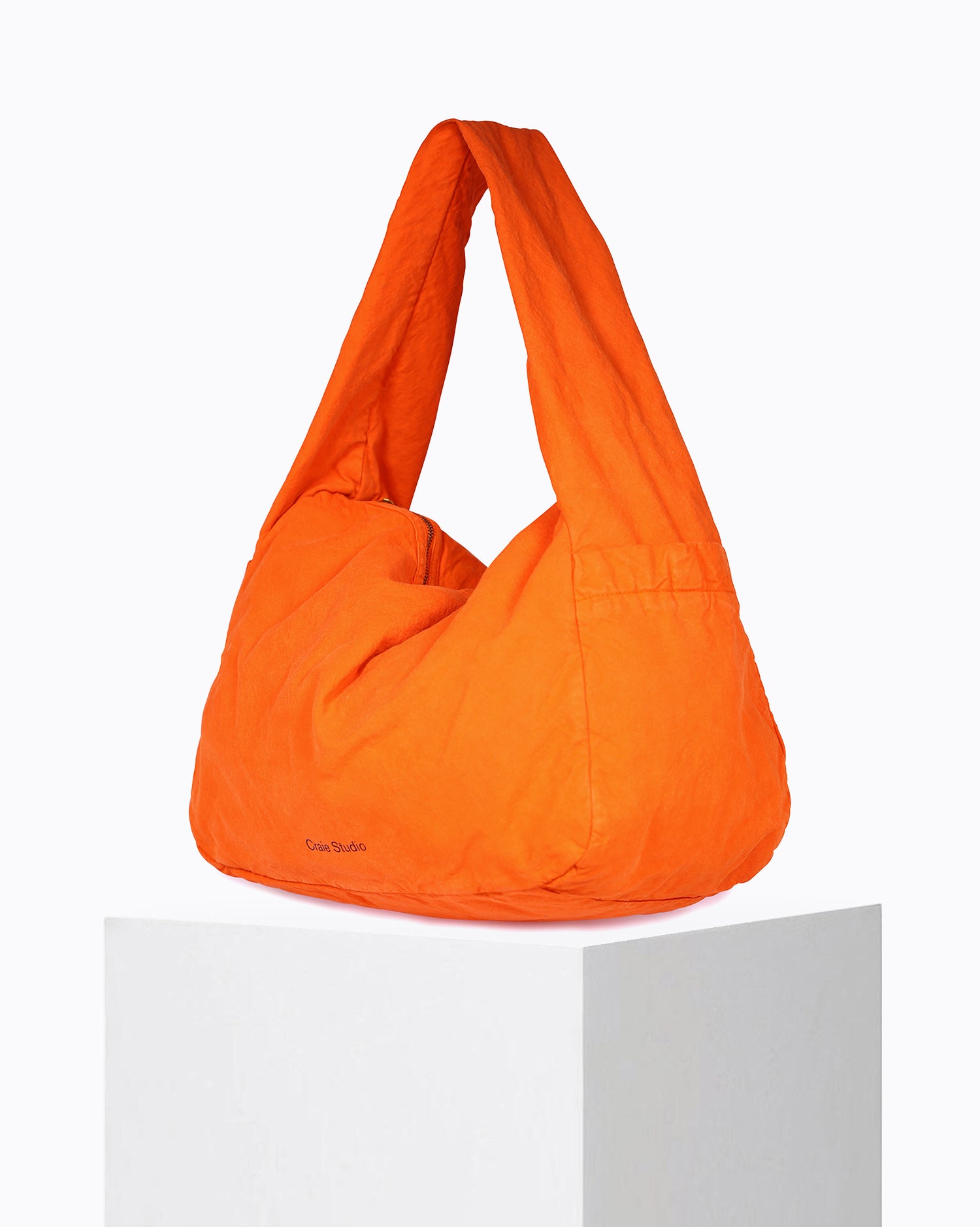 Realza tus looks con color con nuestro pequeño bolso Hobo, un hermoso artículo atemporal realzado por este brillante naranja Parrot, de nuestra colección eco-responsable en algodón orgánico: Wear Wash Love Recycle. Perfecto para el uso diario, guarda todos tus elementos esenciales para el día en él y colócalo sobre el hombro para liberar tus manos o incluso cruzado.