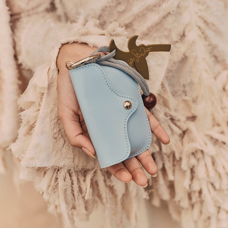 Son rabat à l’inspiration western, écho au sac West, lui apporte une touche graphique et distinctive. Sa fermeture par bouton-pression central permet de regrouper vos essentiels en un seul endroit : pièces et billets sont rangés en toute sécurité, tout en conservant une ligne épurée.