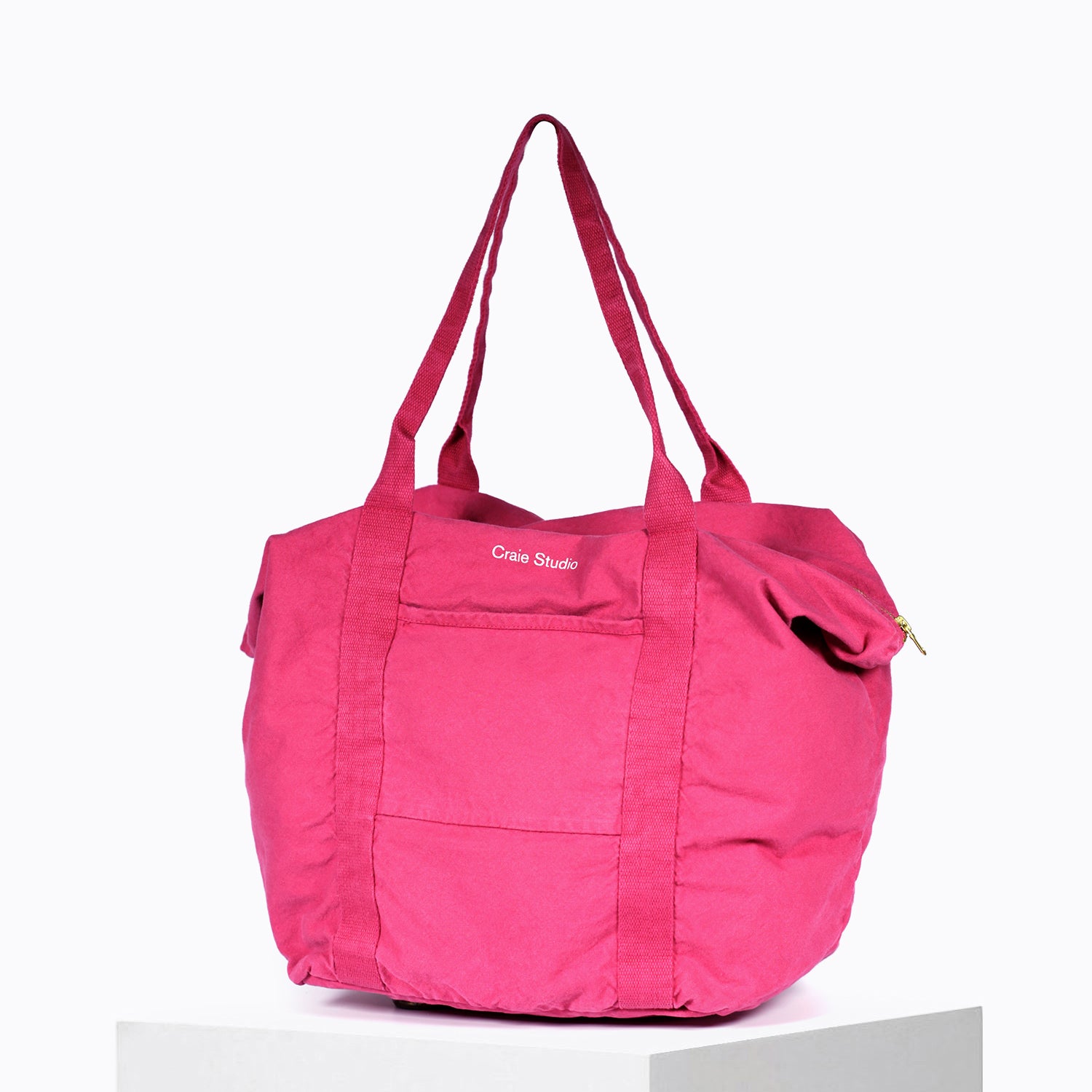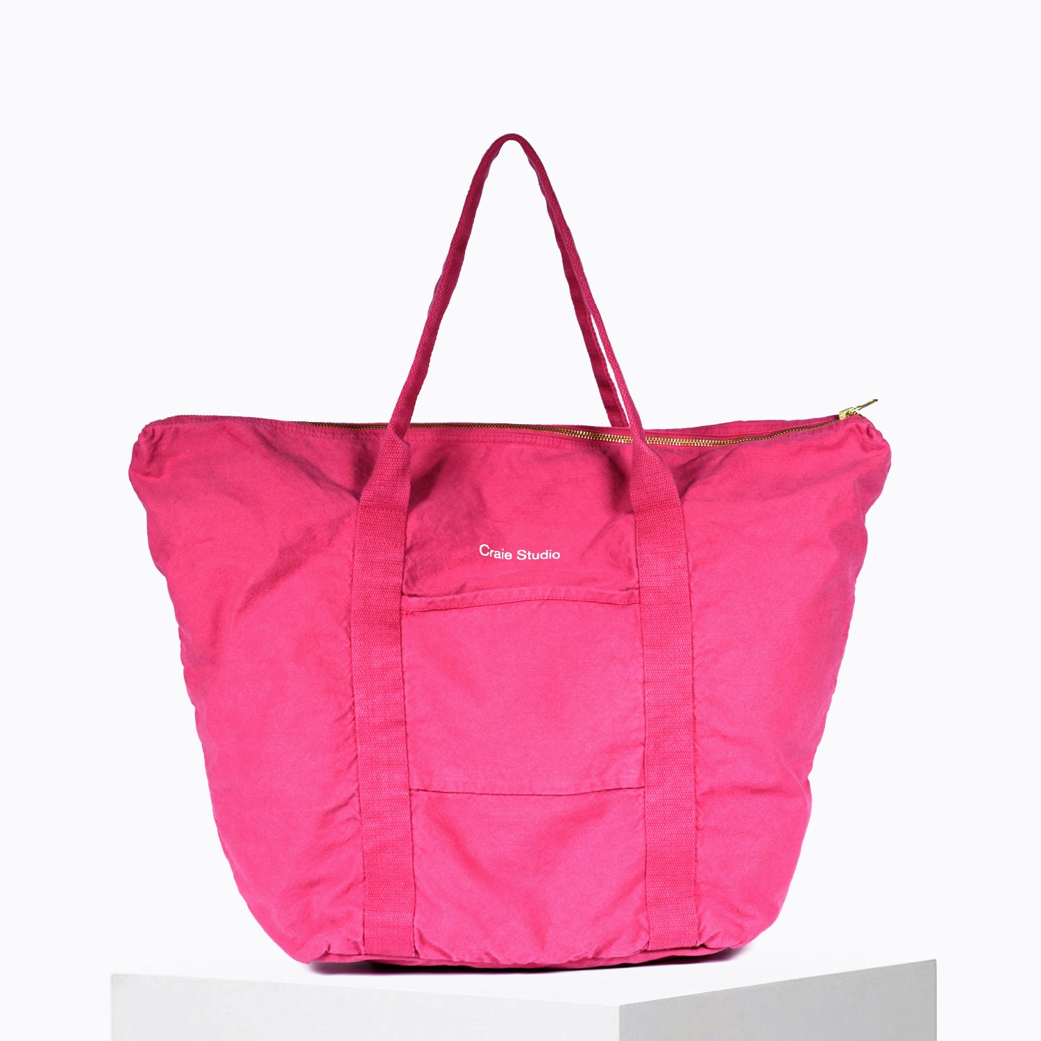 Atemporalmente flexible y práctico, el bolso 24H en color Dahlia de nuestra colección eco-responsable en algodón orgánico: Wear Wash Love Recycle. Este es nuestro bolso tote femenino con cremallera en un bonito rosa brillante confeccionado en algodón sobreteñido unisex que nunca te quitarás.