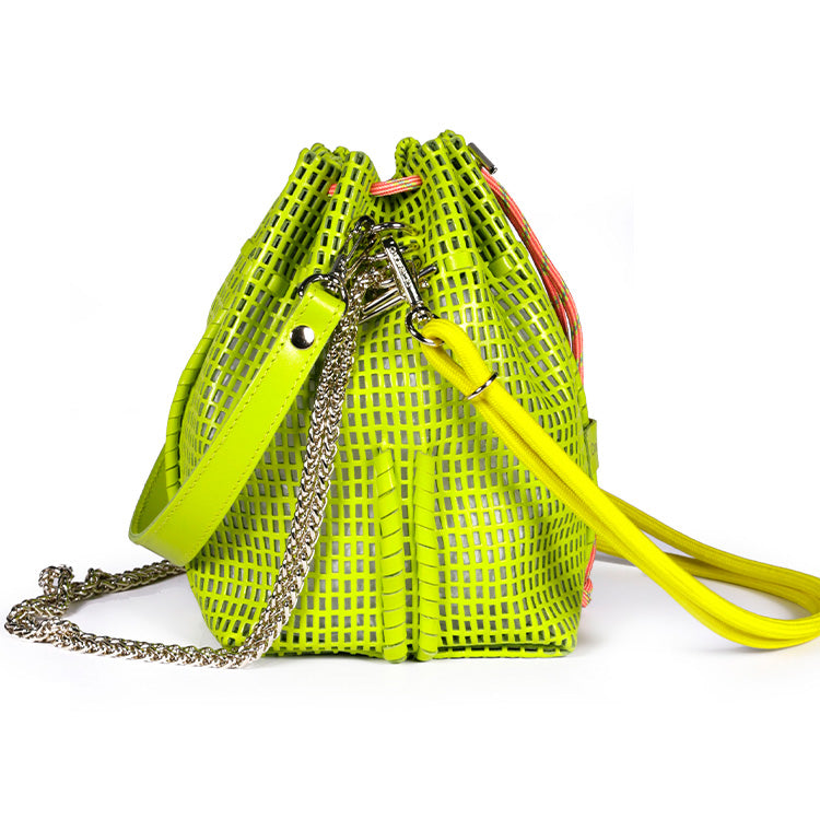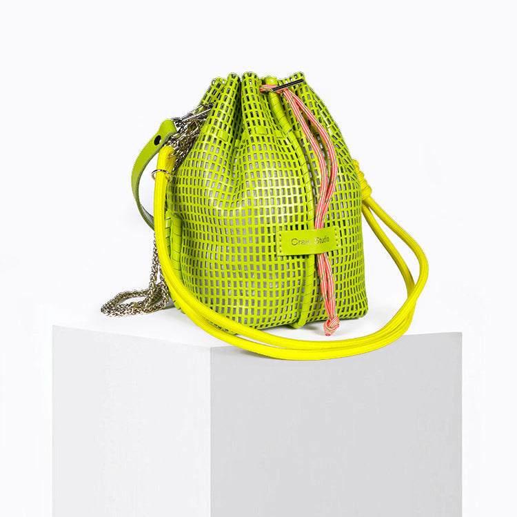 Le sac Bibi Lime est un mini sac seau au design audacieux, entièrement fabriqué à la main dans notre atelier de Casablanca. Léger, graphique et lumineux, il incarne l’esprit créatif et coloré de Craie Studio.