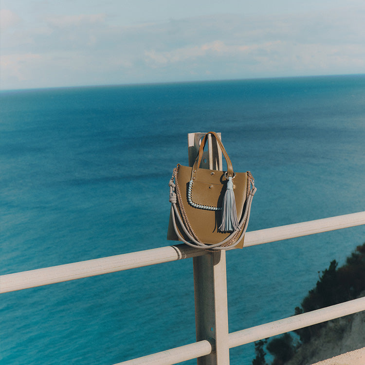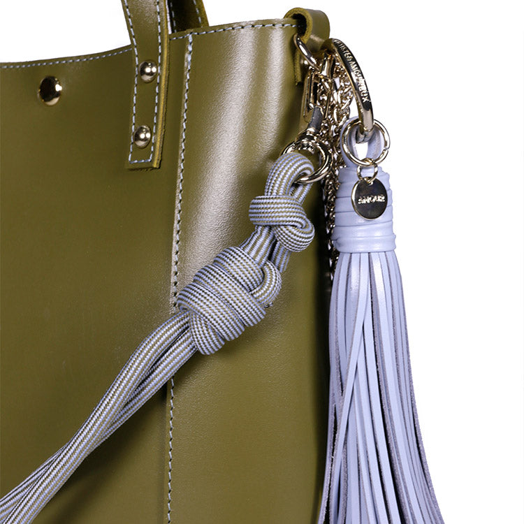 Modulable, le sac Grand Âme est livré avec deux bandoulières pour varier les allures selon les envies et les occasions :