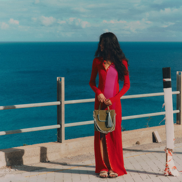 – une bandoulière en corde d’escalade Onde, plus sporty chic, pour une silhouette décontractée et moderne.