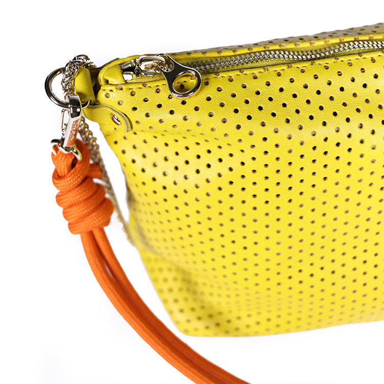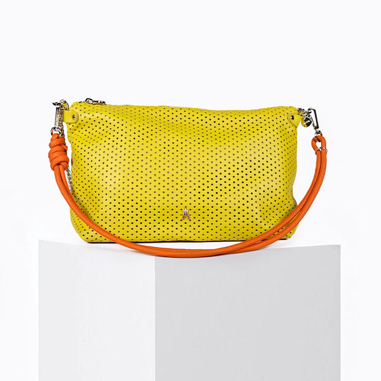 Le Mallow Perfo Jaune est un sac modulable en cuir au style affirmé, proposé avec deux bandoulières pour s’adapter à toutes les envies et à tous les moments de la journée.