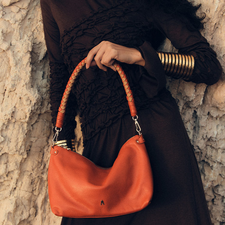 Le sac Mallow Twist Grainé Mandarine Sand est livré avec une bandoulière en cuir réglable, permettant un porté épaule ou crossbody selon vos envies et les moments de la journée. Un modèle pensé pour conjuguer confort, élégance et fonctionnalité au quotidien.