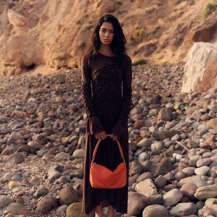 Le Mallow Twist Grainé Mandarine Sand est une déclinaison raffinée du modèle iconique Mallow, réalisée en cuir de vachette grainé mandarine. Intemporel et élégant, ce sac en cuir s’inscrit dans une allure à la fois moderne et sophistiquée.