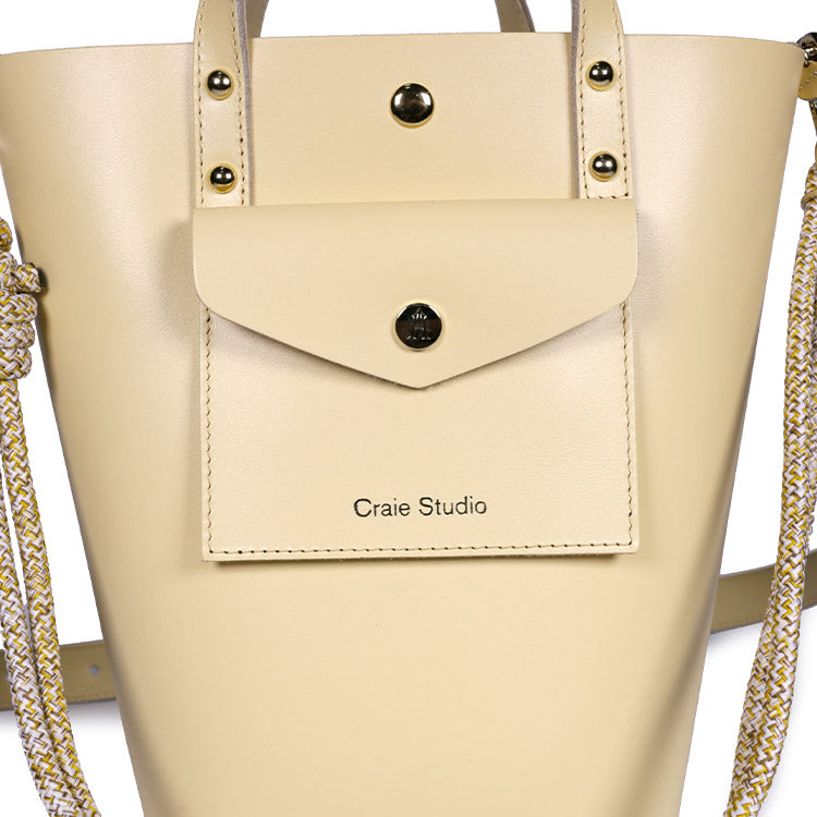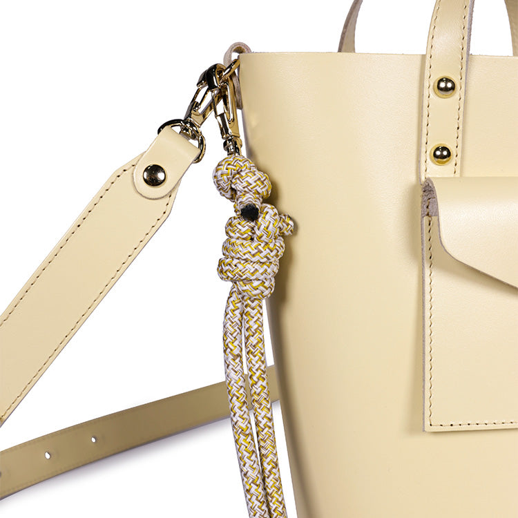 Confectionné en cuir de vachette épais et résistant, ce sac seau en cuir séduit par sa tenue impeccable et son toucher authentique. Sa teinte jaune beurre, chaleureuse et lumineuse, apporte une touche de sophistication moderne à toutes vos silhouettes.