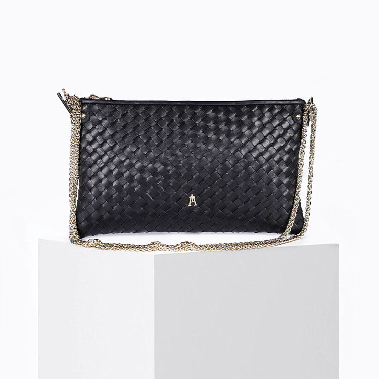 Une pochette en cuir tressé qui allie savoir-faire artisanal, élégance et modularité, signature de l’univers Craie Studio.