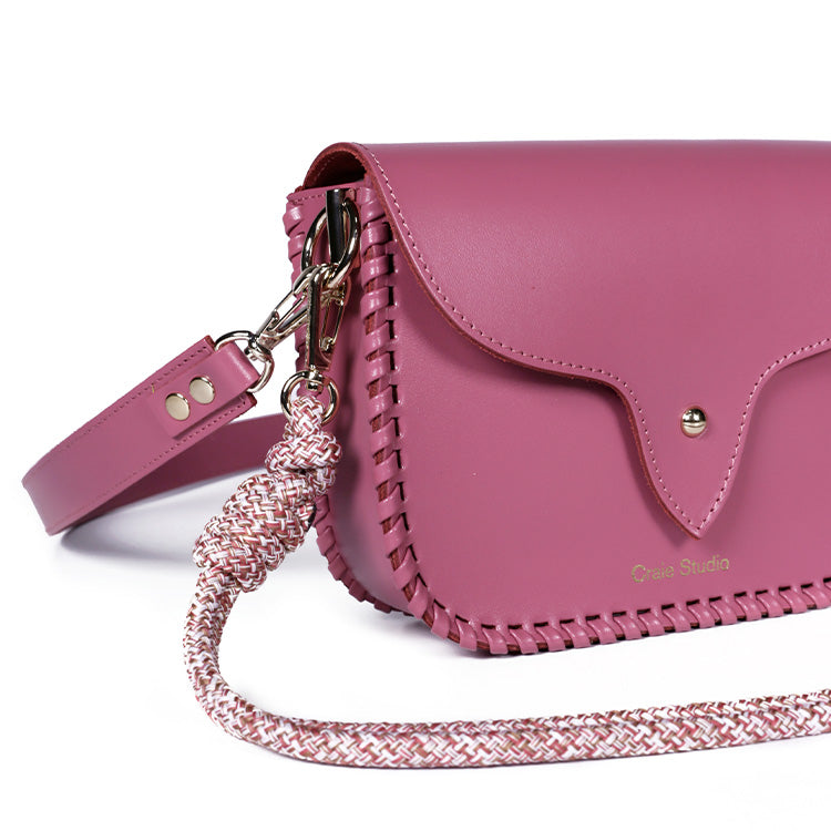 Le sac West Blush incarne l’équilibre parfait entre structure contemporaine et esprit western. Confectionné en cuir de veau rigide vieux rose, il séduit par sa silhouette graphique et ses coutures en cuir faites à la main, qui soulignent son caractère affirmé et intemporel.