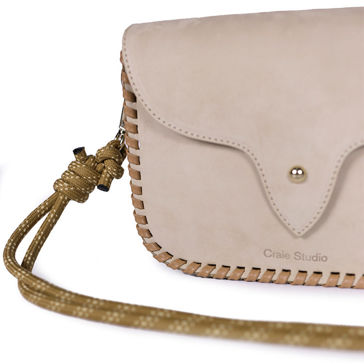 Le sac West Nubuck Hemp incarne l’équilibre parfait entre structure contemporaine et esprit western. Confectionné en cuir nubuck gris Hemp, il séduit par sa silhouette graphique et ses coutures contrastées en cuir Mocha, réalisées à la main, qui soulignent son caractère affirmé et intemporel.