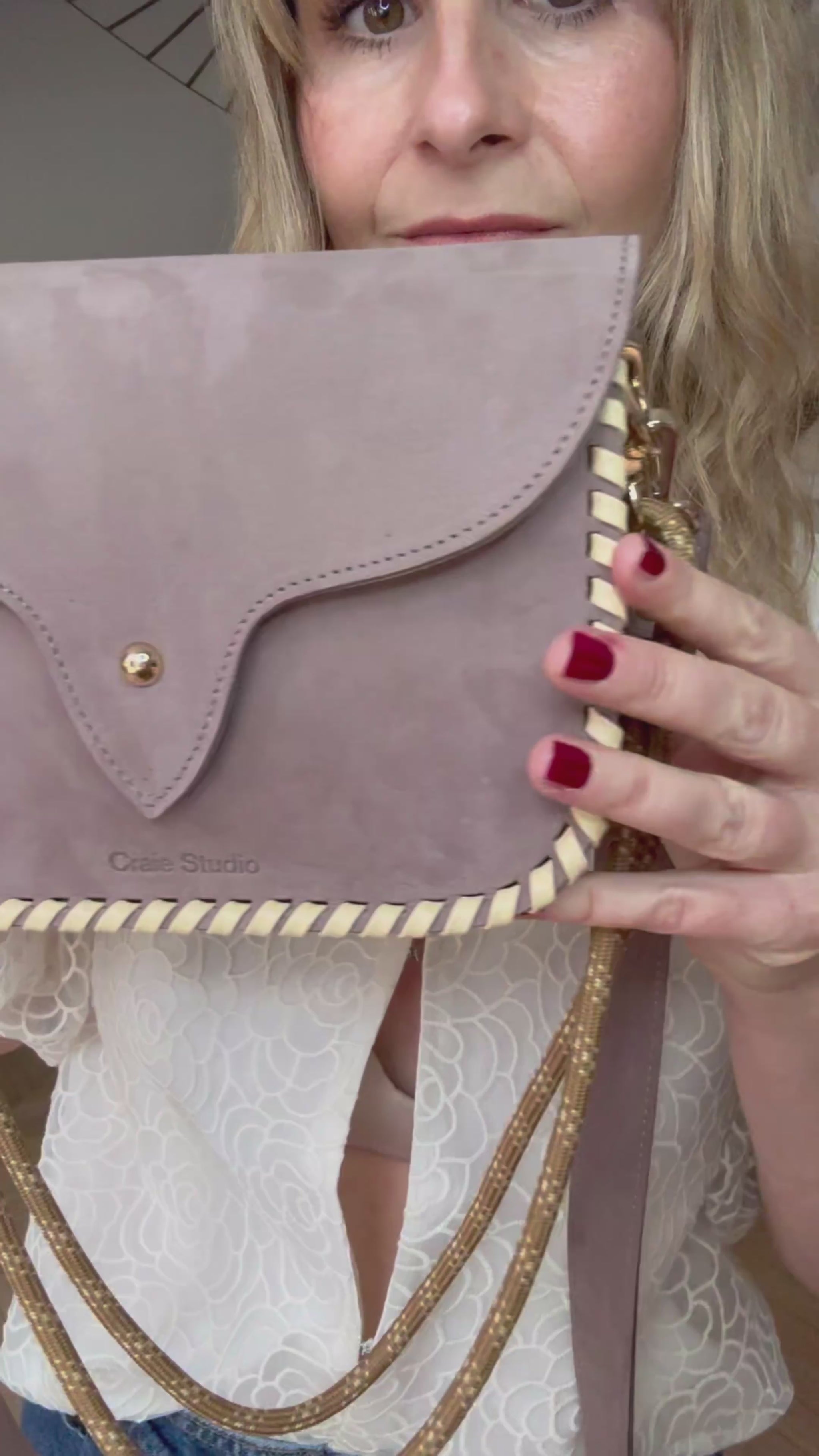 Le sac West Nubuck Taupe incarne l’équilibre parfait entre structure contemporaine et esprit western. Confectionné en cuir nubuck taupe, il séduit par sa silhouette graphique et ses coutures contrastées en cuir Vanille, réalisées à la main, qui soulignent son caractère affirmé et intemporel.