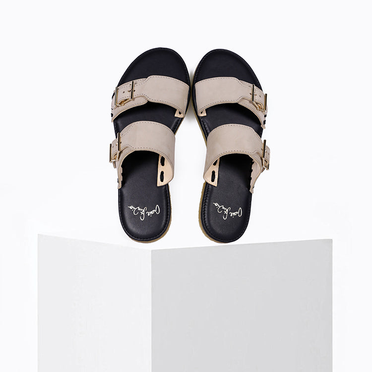 Cette version est réalisée dans un superbe nubuck gris clair au toucher velouté. Lumineuse et facile à associer, cette sandale d’été s’accorde avec tous les looks — du denim brut à la robe fluide — et crée un contraste élégant avec la semelle en cuir noir.