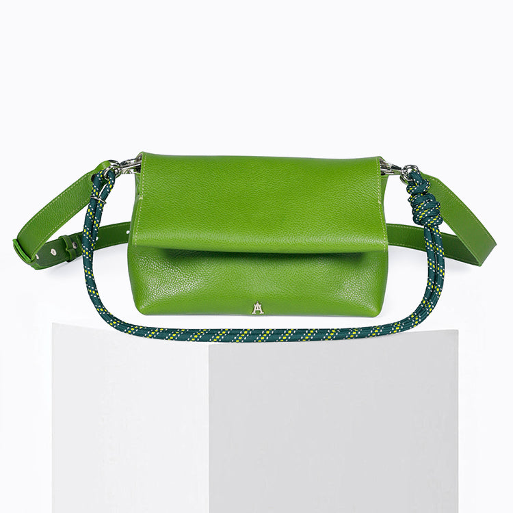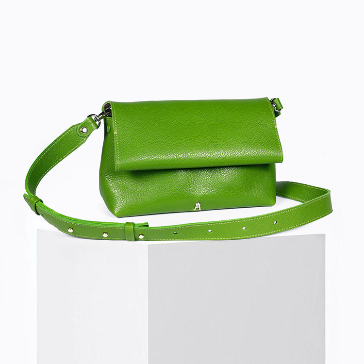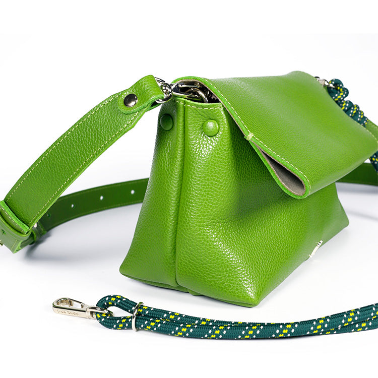 Le cuir de veau grainé offre une texture agréable et une belle résistance à l’usage. Son coloris vert Matcha, vif et lumineux marquera les esprits. À l'intérieur, une doublure microfibre apporte douceur et légèreté.