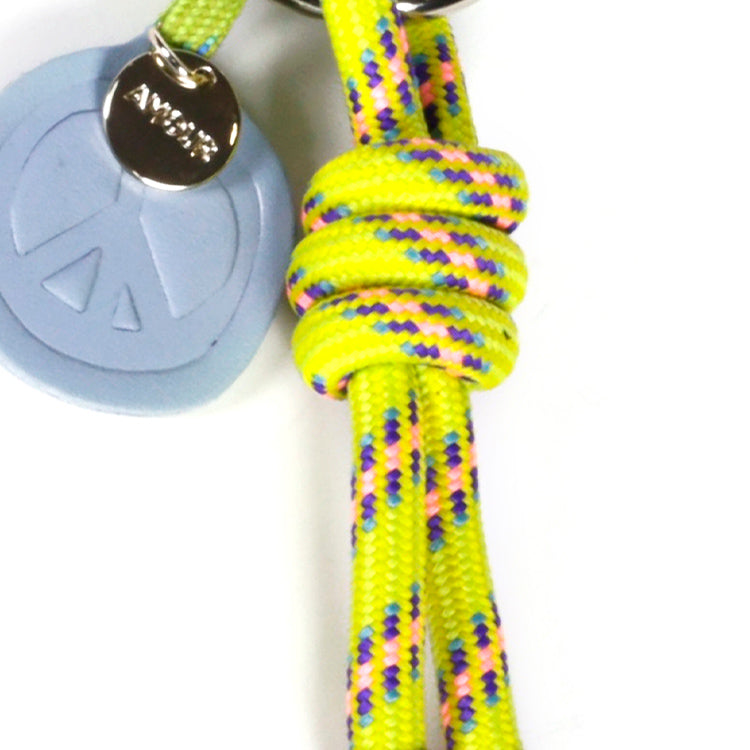 Bandoulière amovible en corde d'escalade motif Tech Citron : un jaune avec des touches de turquoise, de violet et de rose fluo.