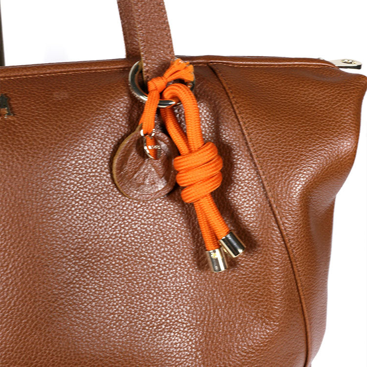 Il se porte aussi facilement à l'épaule grâce à ses longues anses confortables, et est accompagné d’un porte-clés en corde d’escalade mandarine amovible, détail signature de Craie Studio.