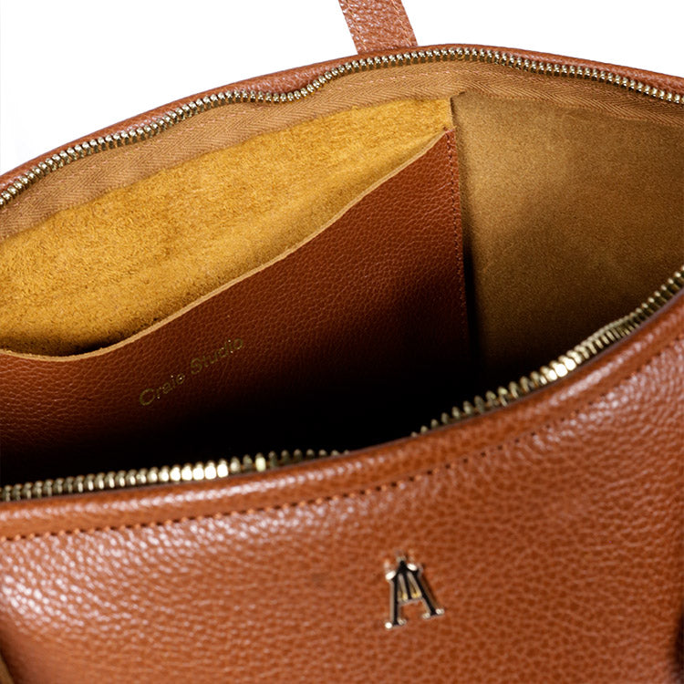 Confectionné en cuir de veau grainé, il séduit par sa silhouette structurée et son allure affirmée. Sa grande capacité permet d'y glisser toutes vos affaires pour une escapade ou une journée bien remplie.
