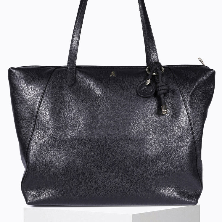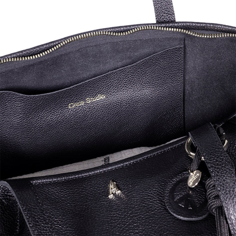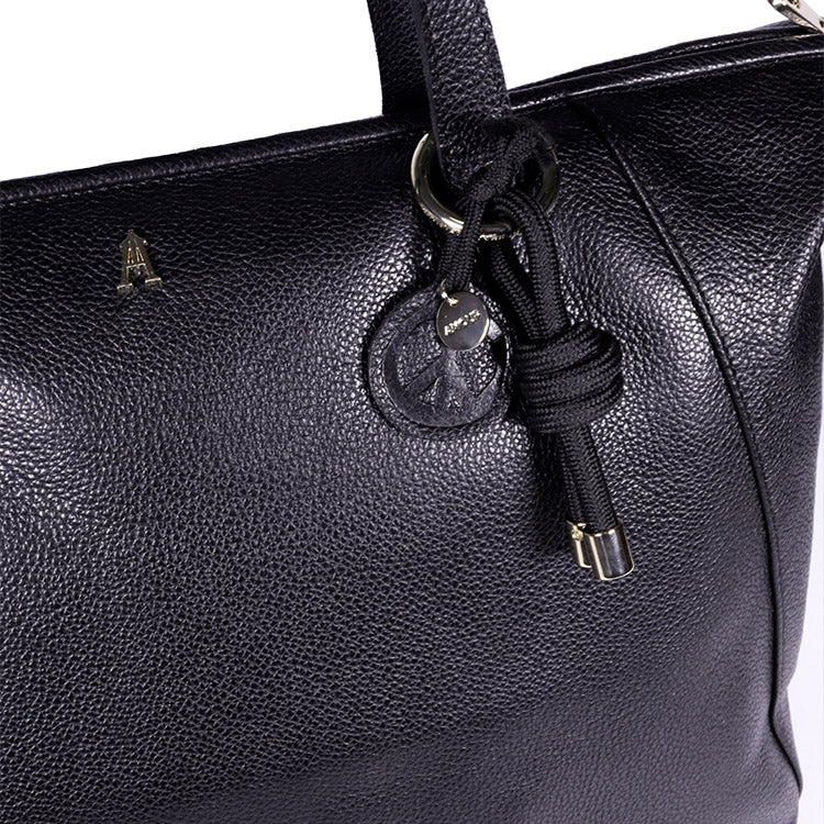 Confectionné en cuir de veau grainé, il séduit par sa silhouette structurée et son allure affirmée. Sa grande capacité permet d'y glisser toutes vos affaires pour une escapade ou une journée bien remplie.