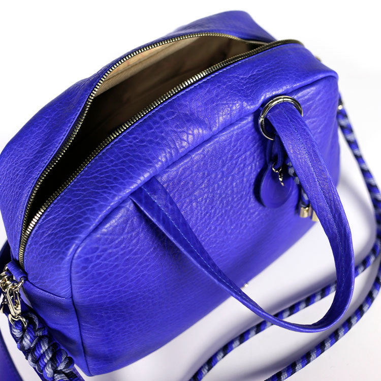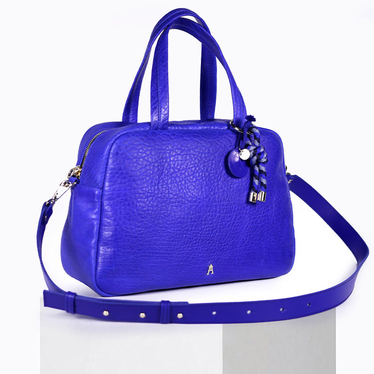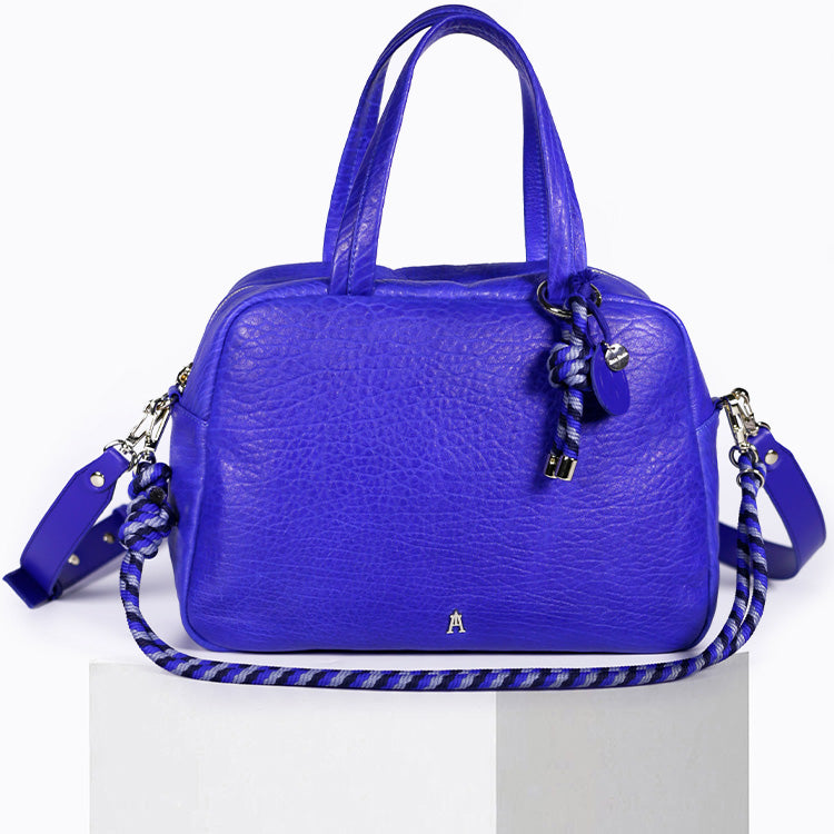 Son format généreux accueille vos essentiels sans compromis, tandis que ses deux anses courtes et ses bandoulières modulables vous offrent plusieurs options de porté. Il est livré avec une bandoulière en cuir lisse réglable pour un rendu sobre et chic, ainsi qu'une corde d’escalade Torsade bleu pour twister vos tenues avec originalité.