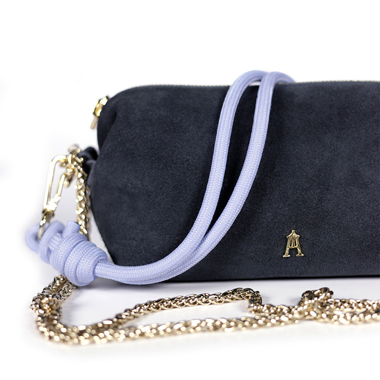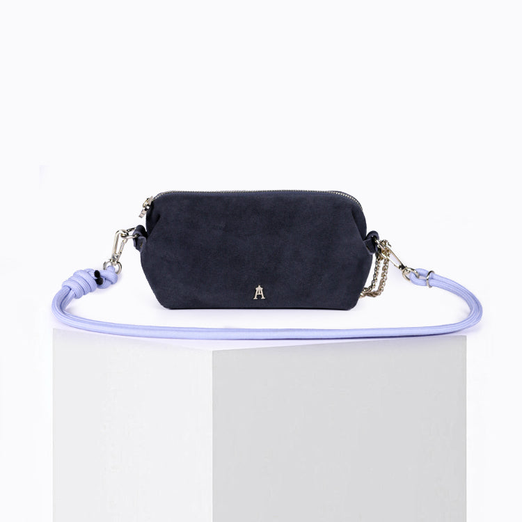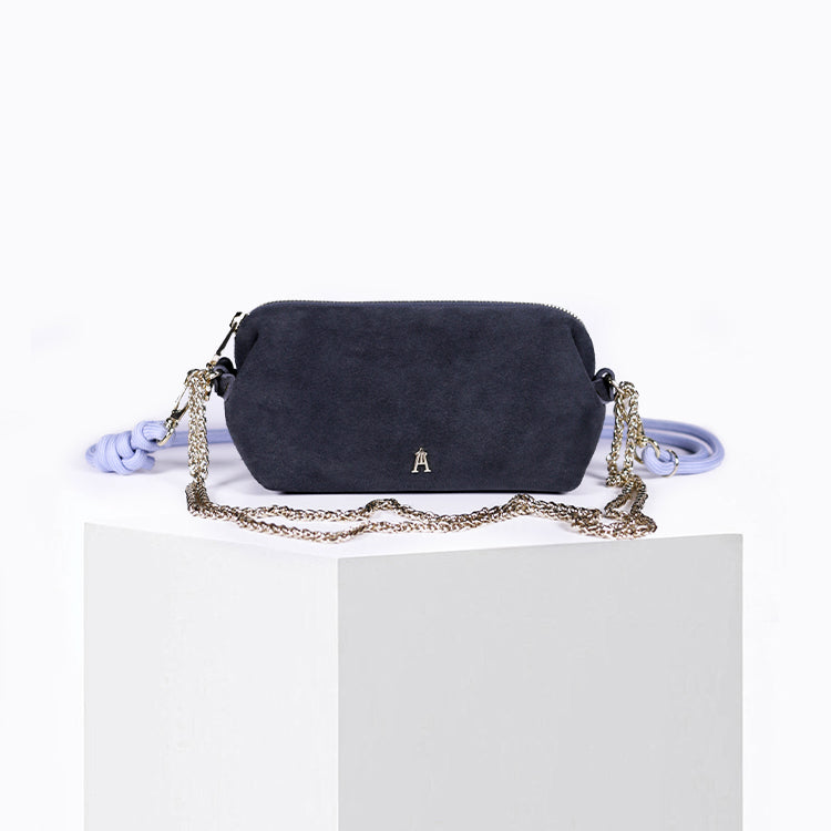 La Pochette Nuage Daim Orage : un mini sac à l’allure bohême et à la fonctionnalité maximale.