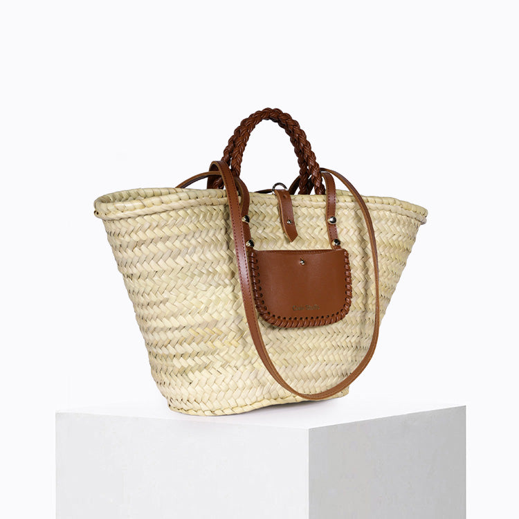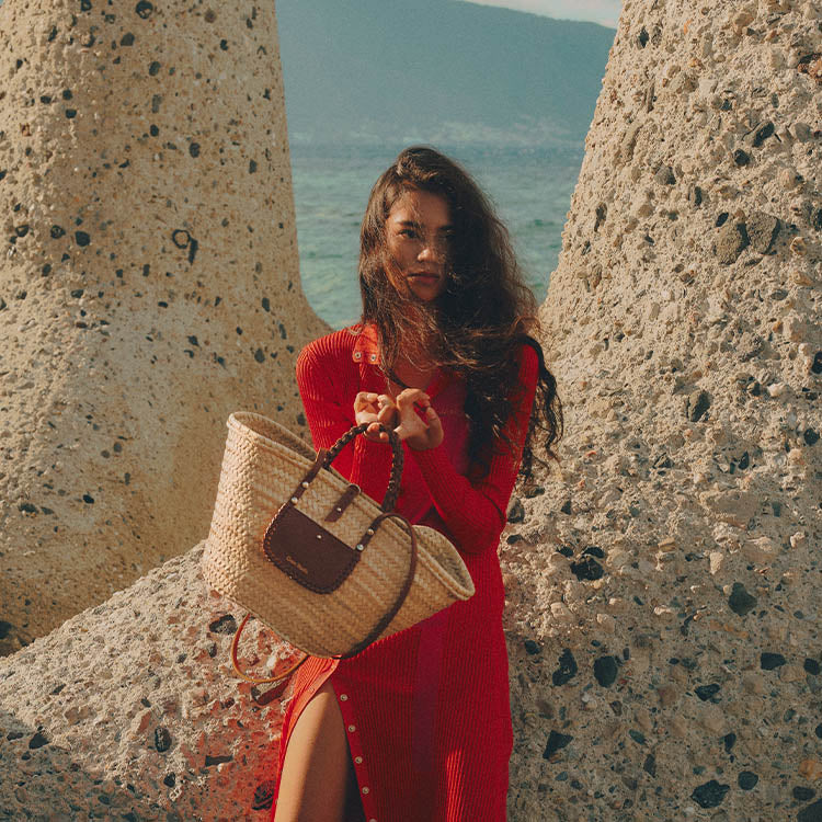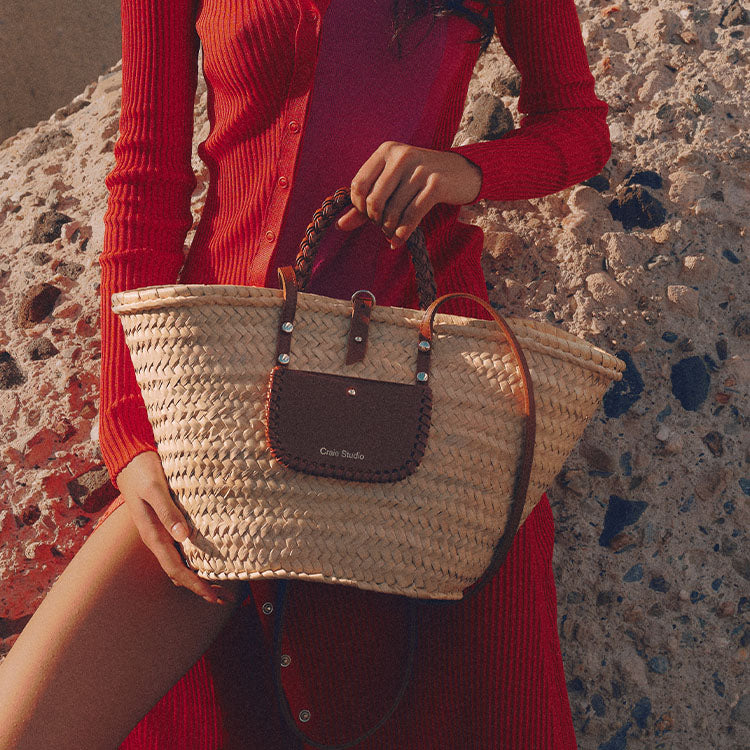 Sa signature réside dans ses poignées courtes minutieusement tressées à la main, qui soulignent l’identité artisanale du modèle tout en offrant un porté élégant et confortable. Pensé pour accompagner le quotidien comme les escapades estivales, il associe praticité et allure naturelle avec justesse.