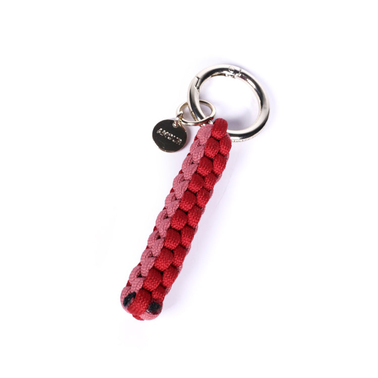 Porte-clés en corde tressée en scoubidou carré, imaginés par Craie Studio dans une sélection de couleurs dynamiques rouge vif et vieux rose.