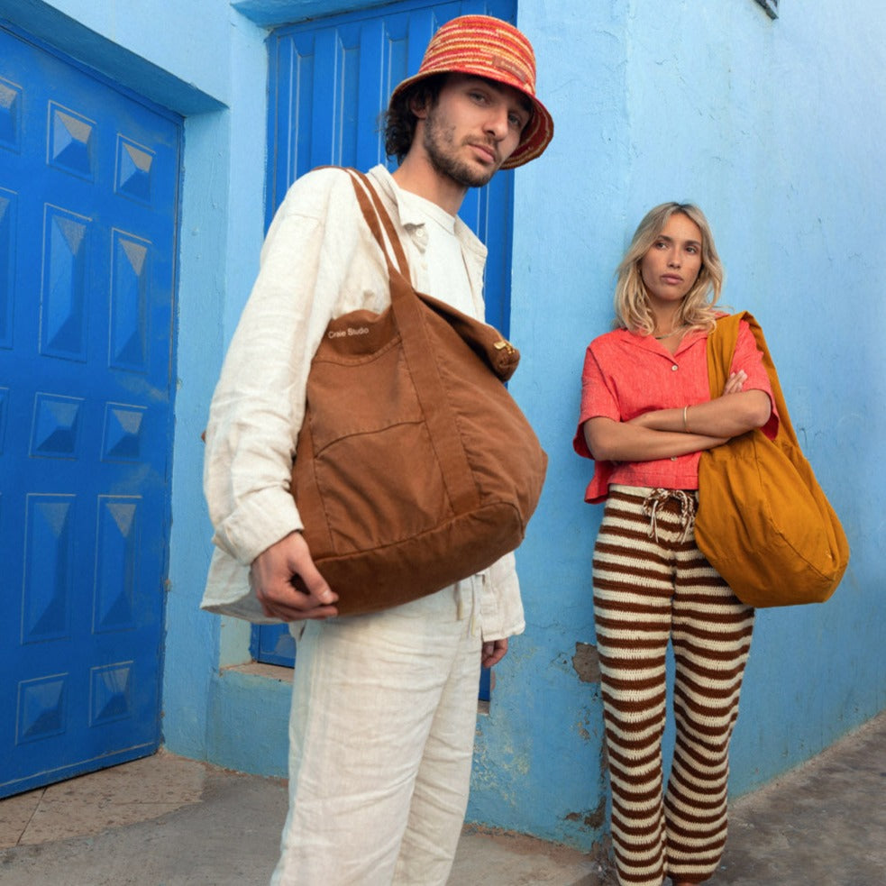 Intemporel souple et pratique, Le sac 24H coloris Taupe issu de notre collection éco-responsable en coton biologique : Wear Wash Love Recycle. C'est notre cabas zippé en coton surteint unisexe que vous ne quitterez plus.