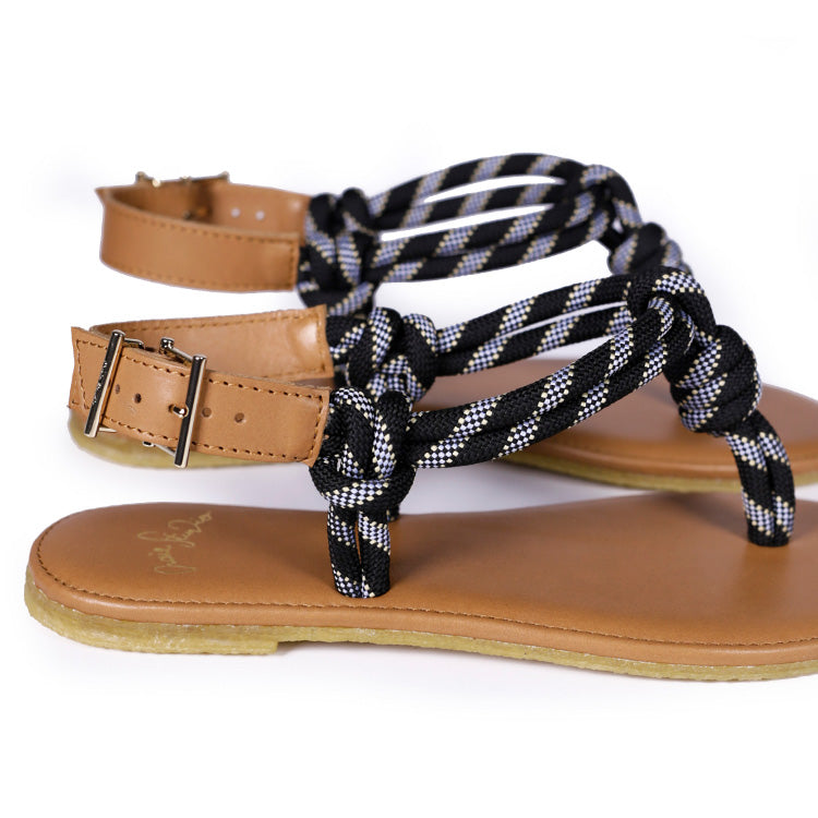 Sa tige épurée est réalisée en corde d’escalade Noir aux détails bleu et vanille, une signature graphique et résistante qui souligne le pied avec subtilité. Elle se règle facilement grâce à une boucle élégante, permettant un ajustement précis et un maintien parfait.