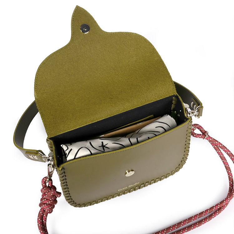 Pensés pour s’adapter à tous les styles, ils sont livrés avec deux bandoulières amovibles : une en cuir pour un porté sophistiqué, l’autre en corde d’escalade colorée pour une allure plus décontractée. Leur rabat se ferme par un aimant discret, et l’intérieur est doublé en coton bio pour accueillir vos essentiels en toute sécurité.