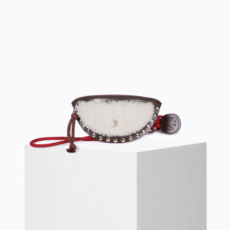Mini version de notre iconique banane Smile, le Winou Clou Laine Choco revisite l’étui AirPods dans une version hivernale et irrésistible. Il marie un cuir de veau rigide chocolat à un rabat en laine écrue toute douce, contrasté par une ligne de clous pour un look à la fois cosy et audacieux.